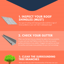 INSPECT YOUR ROOF SHINGLES (MUST) Any signs of curling and missing out on granules could be an indication of future problems in your roofing. CHECK YOUR GUTTER When was the last time you cleared the particles that collects on your roof over time? CLEAR THE SURROUNDING TREE BRANCHES Make sure that you don’t have branches of the tree over your roofing. CHECK THE ROOF FLASHING The roofing flashing is one of your roofing’s weak area.